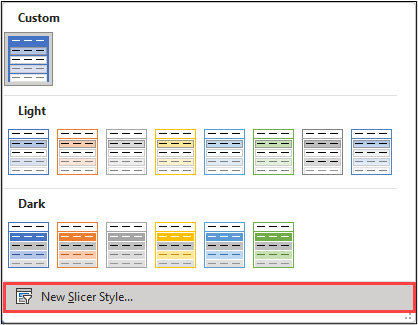 Sometimes we might want to create a new slicer style that isn’t based on an existing style. We can create a new style from scratch.