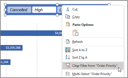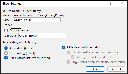 NOTE: If we choose not to display the header, the clear filter button is no longer accessible. We can still clear the filter, simply right-click on the slicer and choose Clear filter.