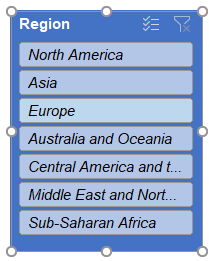 Now is the time to review the new slicer style and make any changes. Let’s change the header ‘Region’, to white, and bold, and change the hover-over color to light blue.