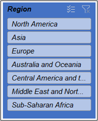 To keep the slicer looking clean, we could choose to hide the header. This will hide the slicer name, the multi-select button, and the clear button from view.